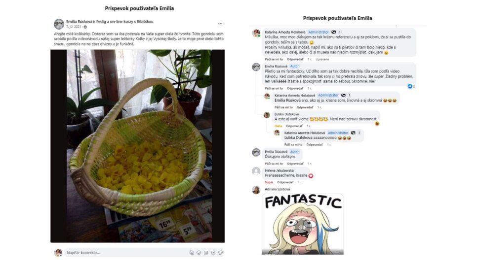Pozri sa na tieto dva príklady z praxe. Takto reaguje košikárka, z takzvaného kruháča. Pletie už viac, ako 3 roky a stále lamentuje, ako sa jej nedarí. Nikde sa v tom nevzdeláva, alebo sa rozhodla zručnosťami zostať na základných kurzoch a túžbami v pokročilých.